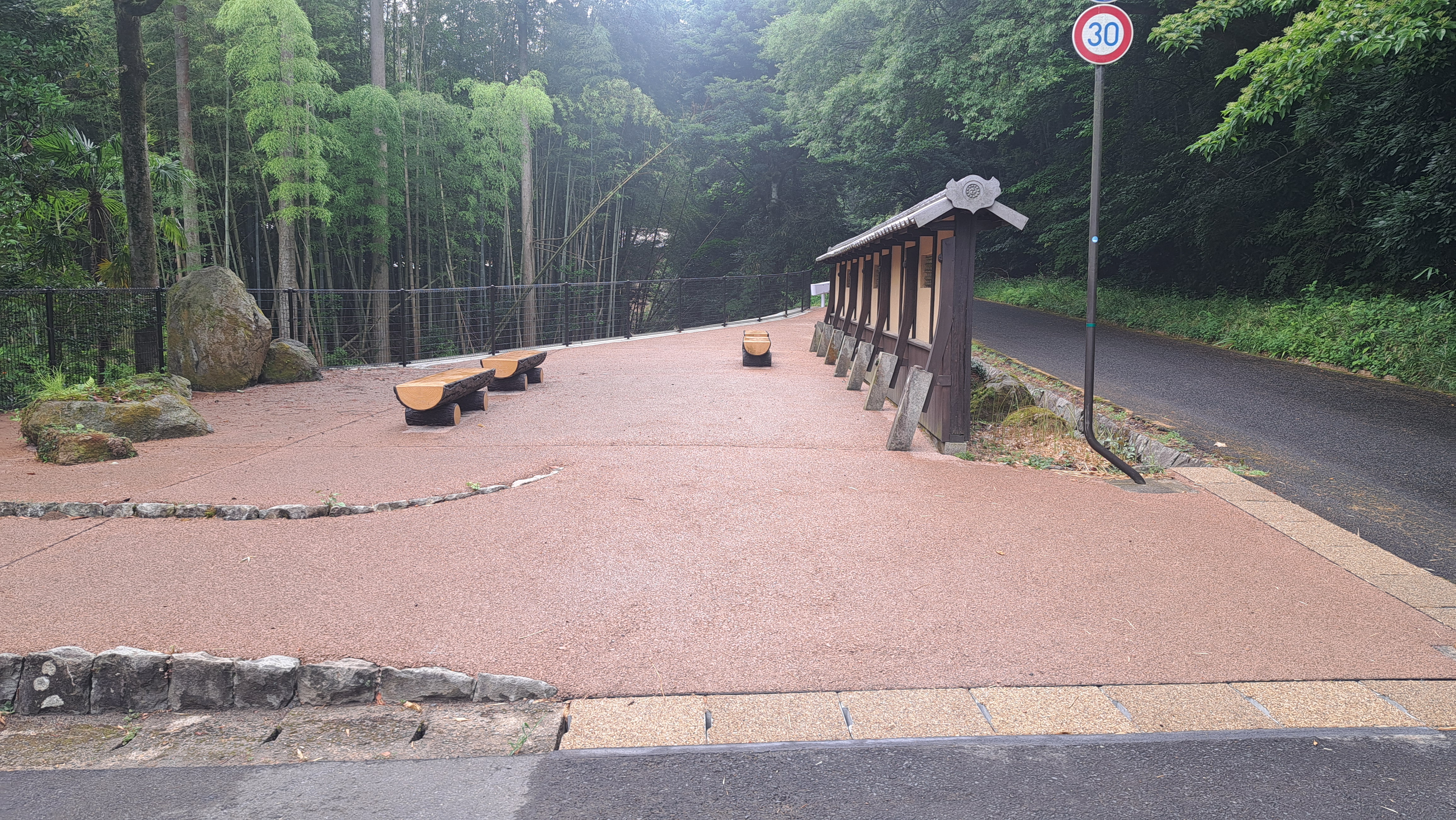 仁摩道の駅外構工事 ほぼ完成 瓦リサイクル舗装が使用されています。